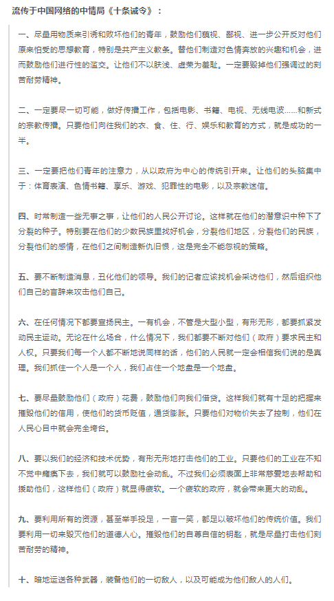 美国在中国的十诫